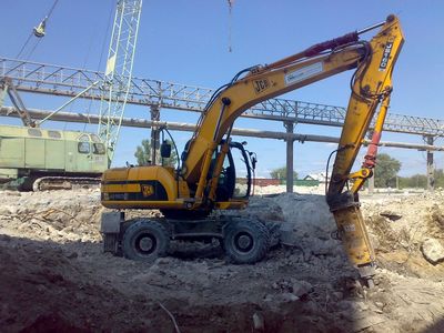 JCB JS 160 W колесный экскаватор полноповоротный. Оснащен гидромолотом Delta F10 и быстросъемным оборудованием.